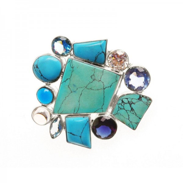 Silver 925s, glass, cubic zirconia, turquoise re